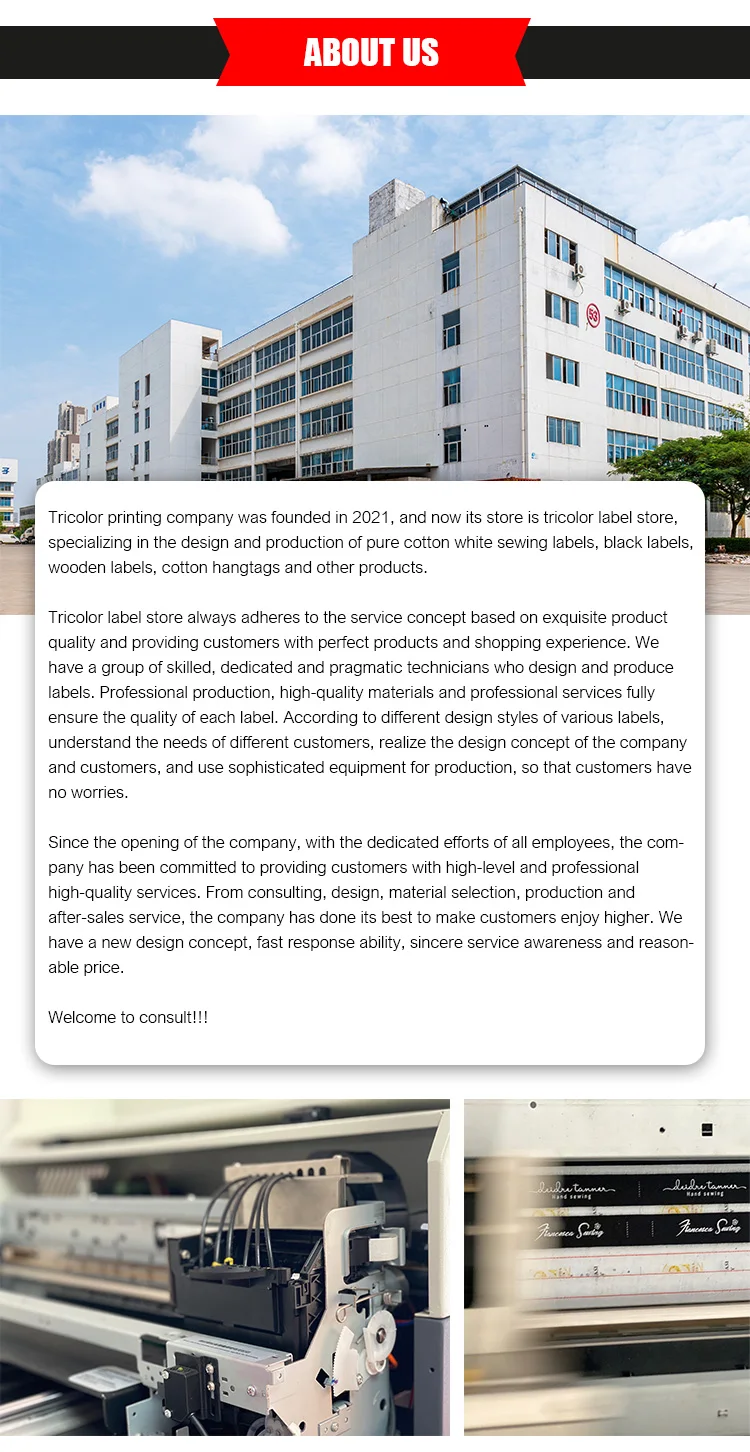 Наши швейные этикетки имеют только хлопчатобумажную ленту, которая не была отрезана.