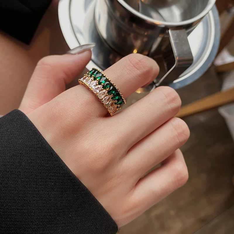 QMCOCO зеленые кристаллы неправильной формы серебро 925 пробы панк кольца для женщин Высокое качество ювелирные изделия корейские модные девушки тонкие аксессуары