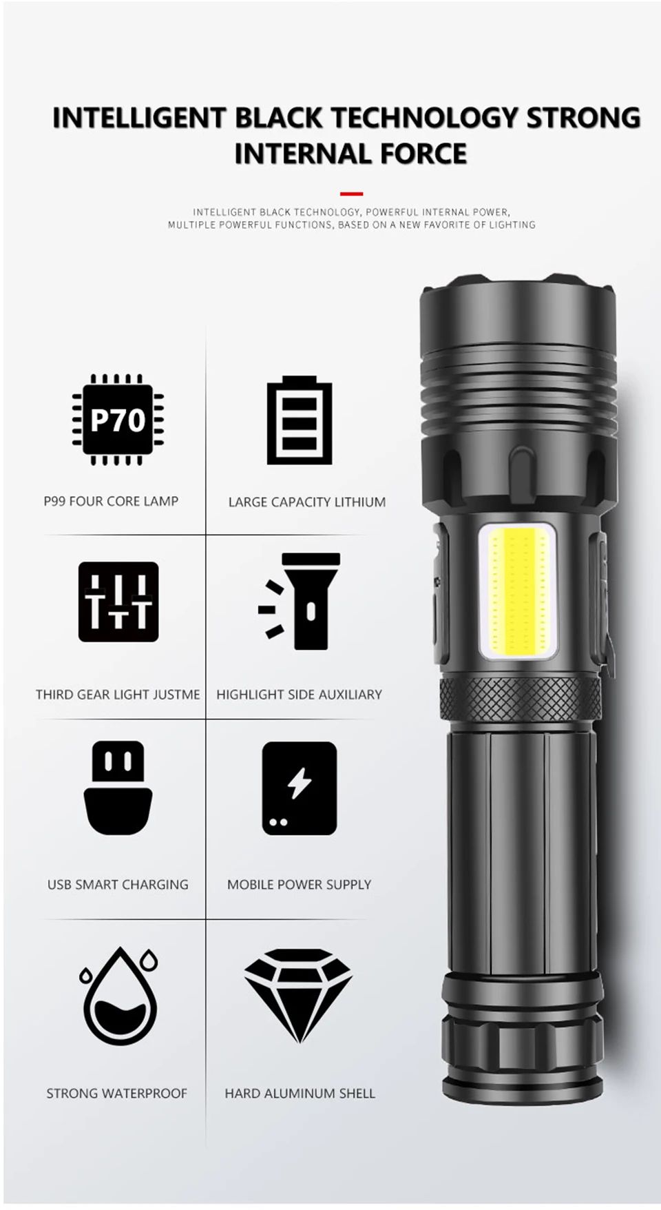 Алюминиевый фонарик XHP100 Коб 9-core светодиодный фонарик Powerban...