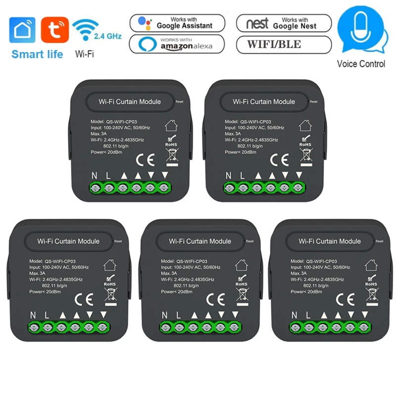 Умный модуль переключателя для штор Tuya Smart Life, Wi-Fi модуль для вращающихся затворов, Поддержка Google Home, Alexa, голосовое управление, управление через приложение, таймер с Google Home