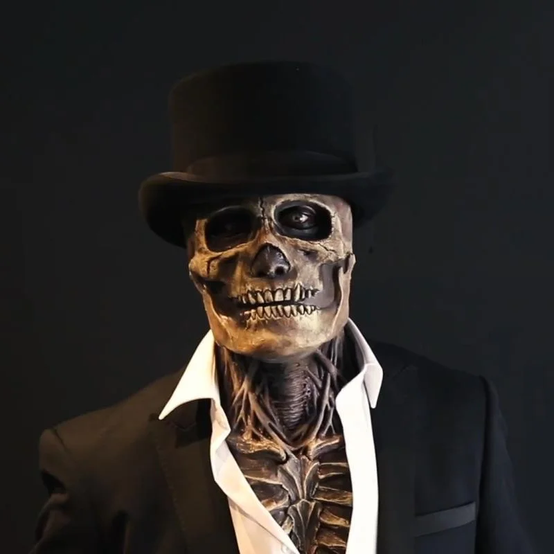 keywords1The Latest Skeleton Biochemical Mask for 2021 Halloween Party Cosplay Props Silicone Full Cover Head Cover with Hat PR Sale