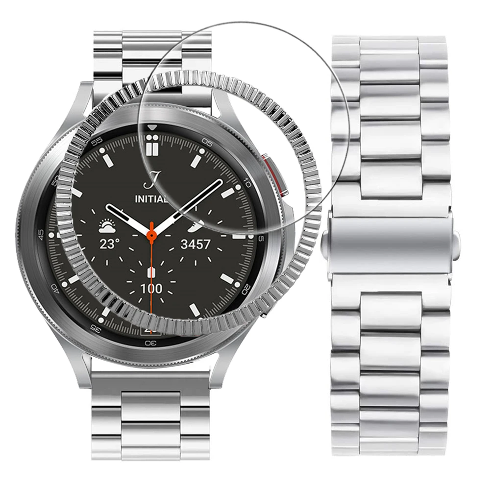 3 шт. для samsung galaxy watch 4 calssic Безель кольцо + металлический ремешок + защита для экрана для galaxy watch 4 46 мм 42 мм ремешок стеклянная пленка