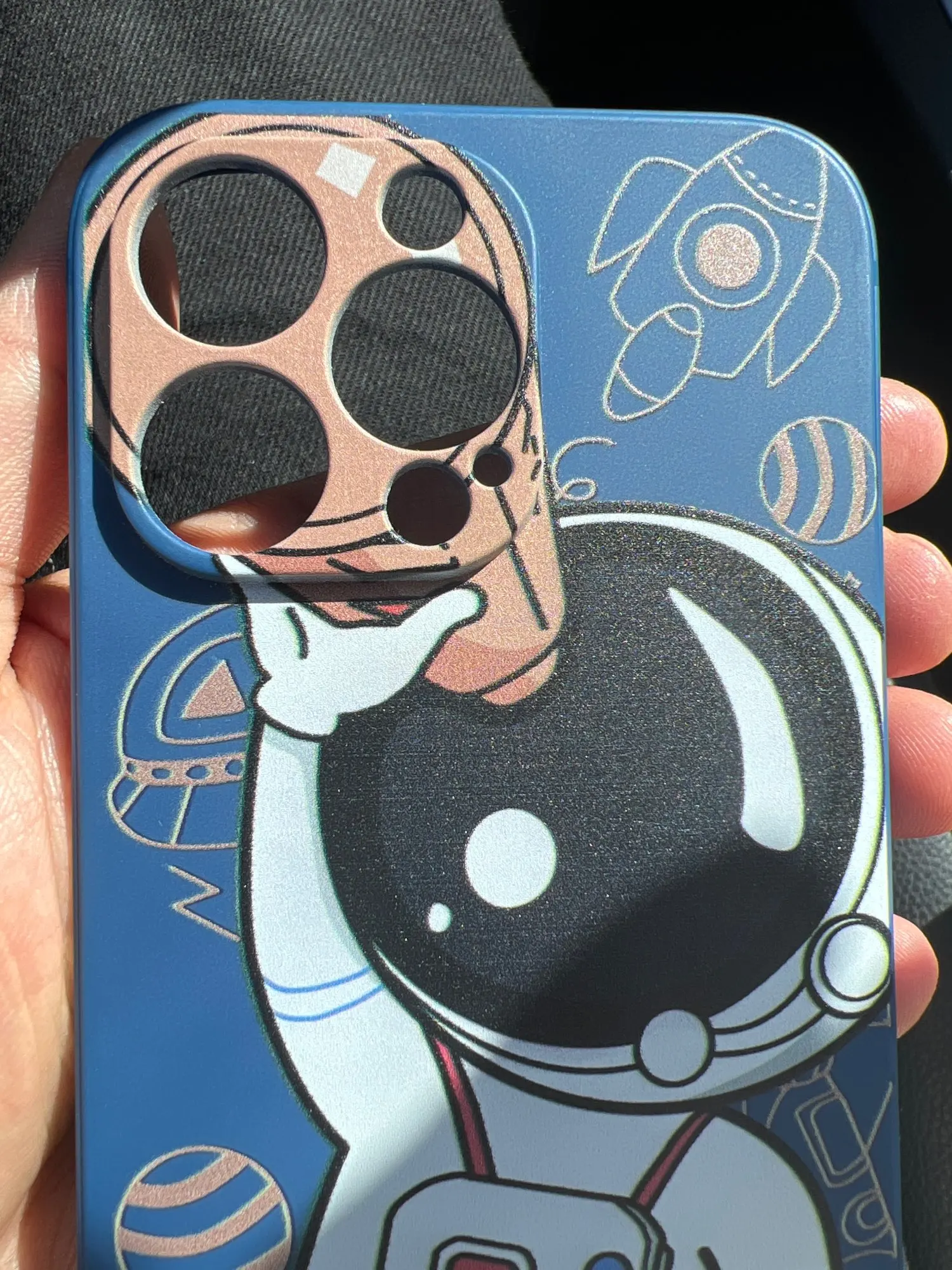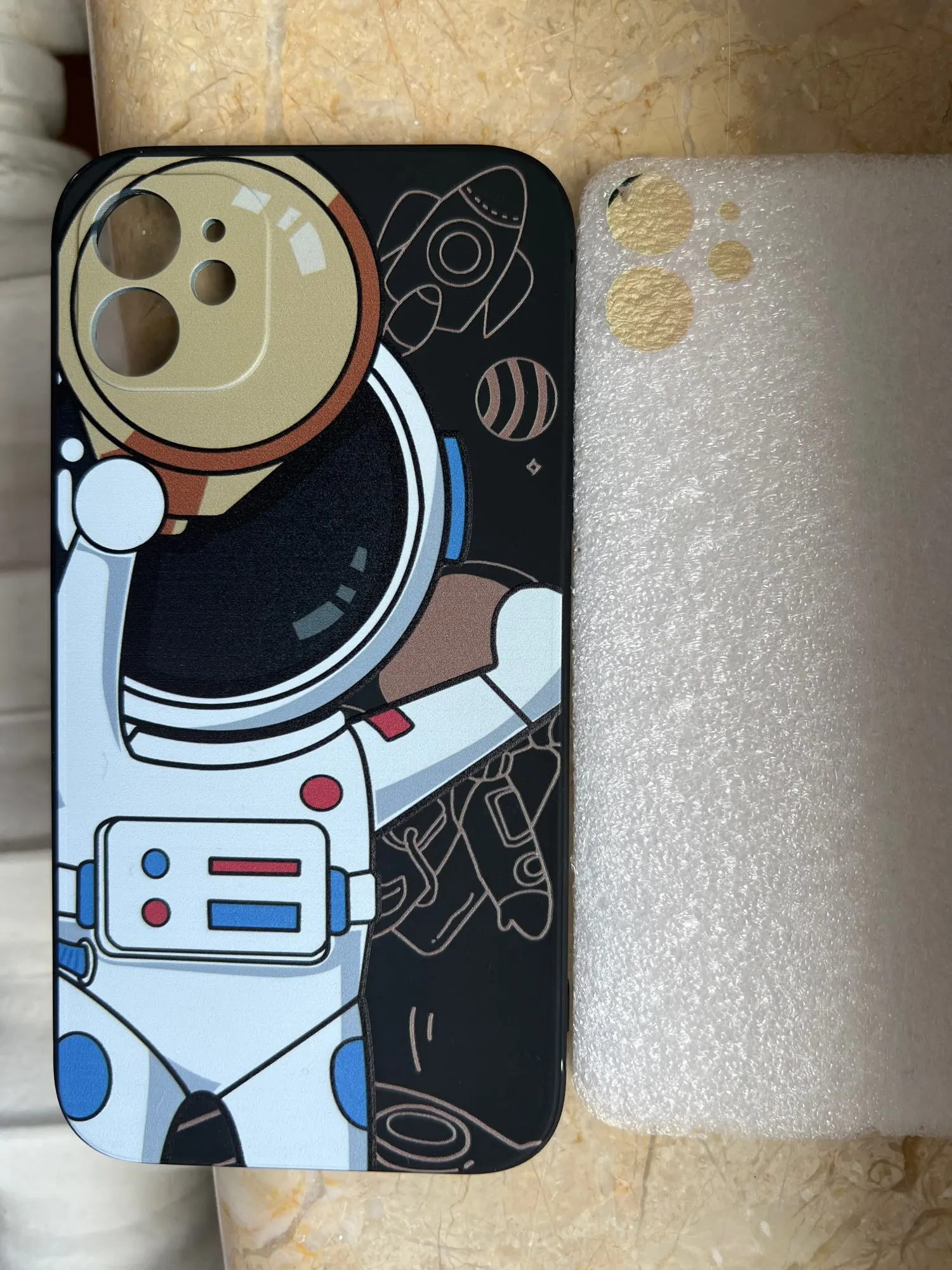 Чехол не соответствует описанию. Качество очень низкое. Напечатаны только космонавты и другие фигурки на черном чехле для iphone. Остальные цвета от отверстий камеры находятся на губке. Вы можете увидеть на фотографиях. Цвета очень бледные. Фотографии сделаны под солнечным светом, чтобы быть видимыми четко.