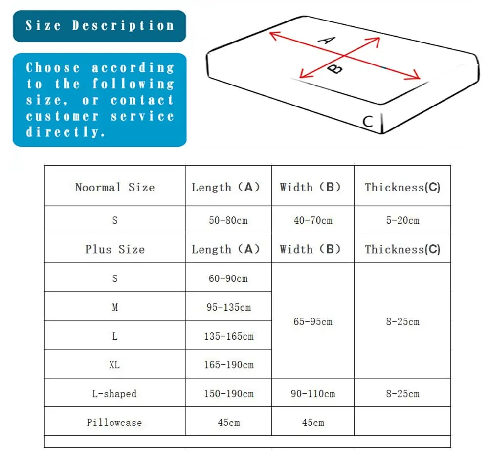 Подходящий размерный ряд:Обычный Размер 1(S) : длина 50-80 см ширина 40-70 см толщина 5-20 смПлюс Размер 1(S) : Длина 60-95 см ширина 65-95 см толщина 5-25 смПлюс Размер 2 (м): длина 95-135 см ширина 65-95 см толщина 5-25 смПлюс Размер 3(L) : длина 135-165 см ширина 65-95 см толщина 5-25 смПлюс Размер 4(XL) : длина 165-190 см ширина 65-95 см толщина 5-25 смL-образный: длина 160-190 см ширина 90-110 см толщина 5-25 смЗадняя крышка подушки: измерьте размер спинки и выберитеСоответствующий размер для покупкиНаволочка: 45*45 смДорогие друзья, если у вас есть какие-либо вопросы по поводу размера, пожалуйста, свяжитесь с нами напрямую, мы порекомендуем Вам наиболее подходящий размер. Это чехол для дивана. Один чехол для дивана используется для одной подушки. Пожалуйста, измерьте все размеры подушки, чтобы купить! Счастливые покупки!