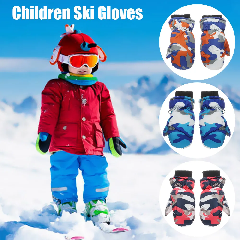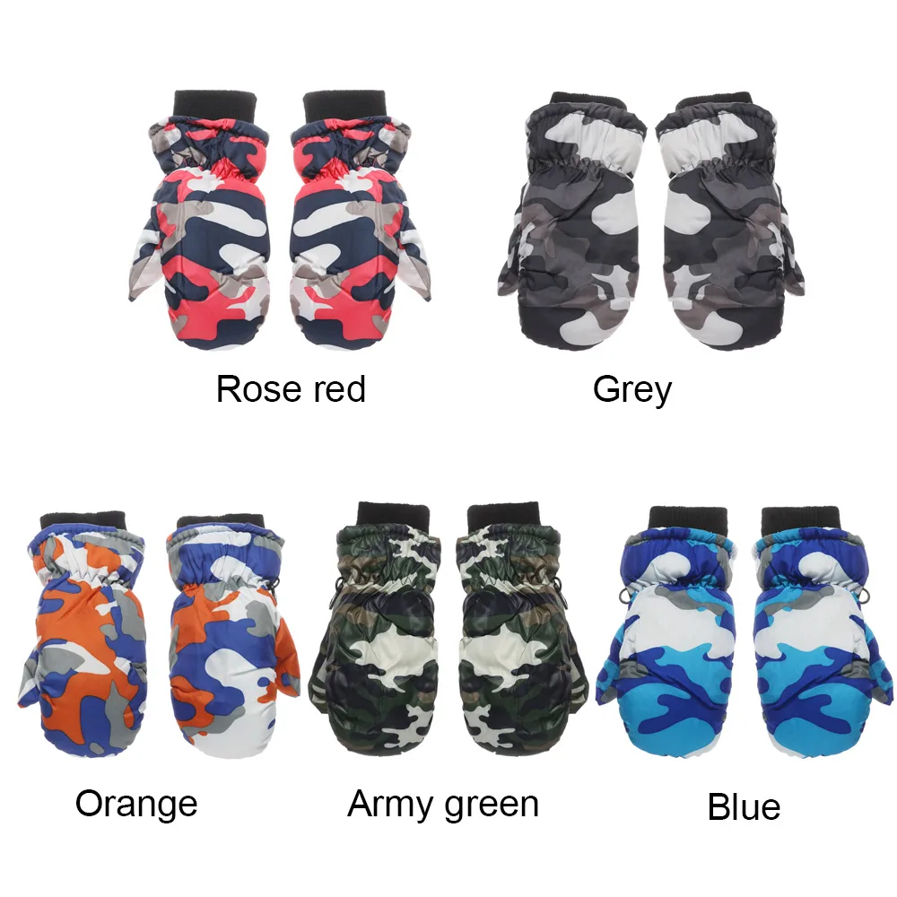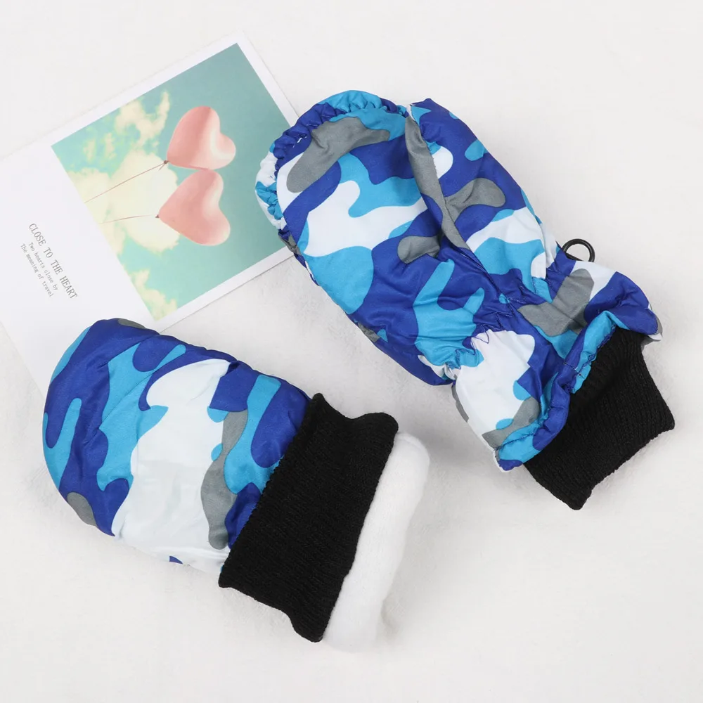 Водонепроницаемые плотные новые модные детские перчатки, камуфляжные лыжные варежки, детские зимние ветрозащитные перчатки для сноуборда, 1 пара