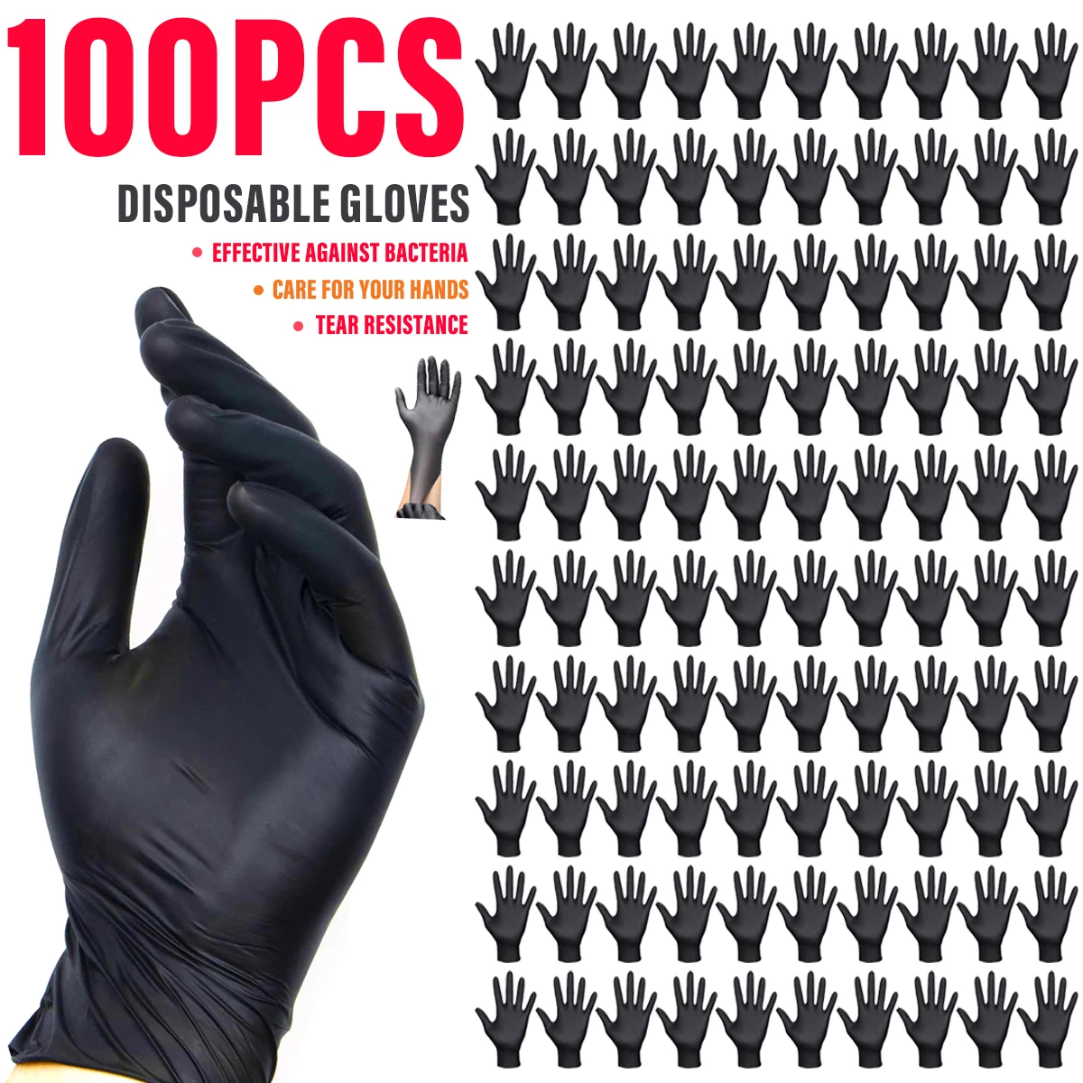 100 шт черные перчатки нитриловые одноразовые бытовые моющие Утепленные перчатки антибактериальные защитные S/M/L