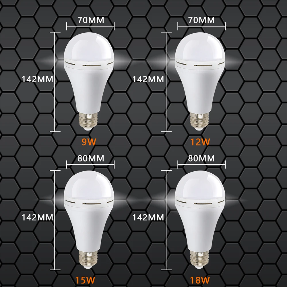 Мощный светодиодный аварийный светильник E27 9 Вт 12 Вт 15 Вт 18 Вт Светодиодный светильник перезаряжаемый Аккумуляторный светильник лампы для наружного освещения