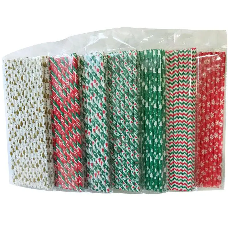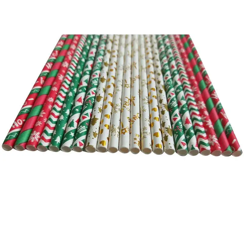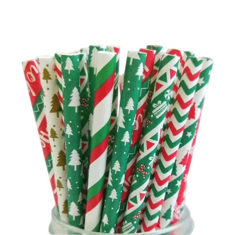 Рождественские бумажные соломинки, экологичные одноразовые разлагае...