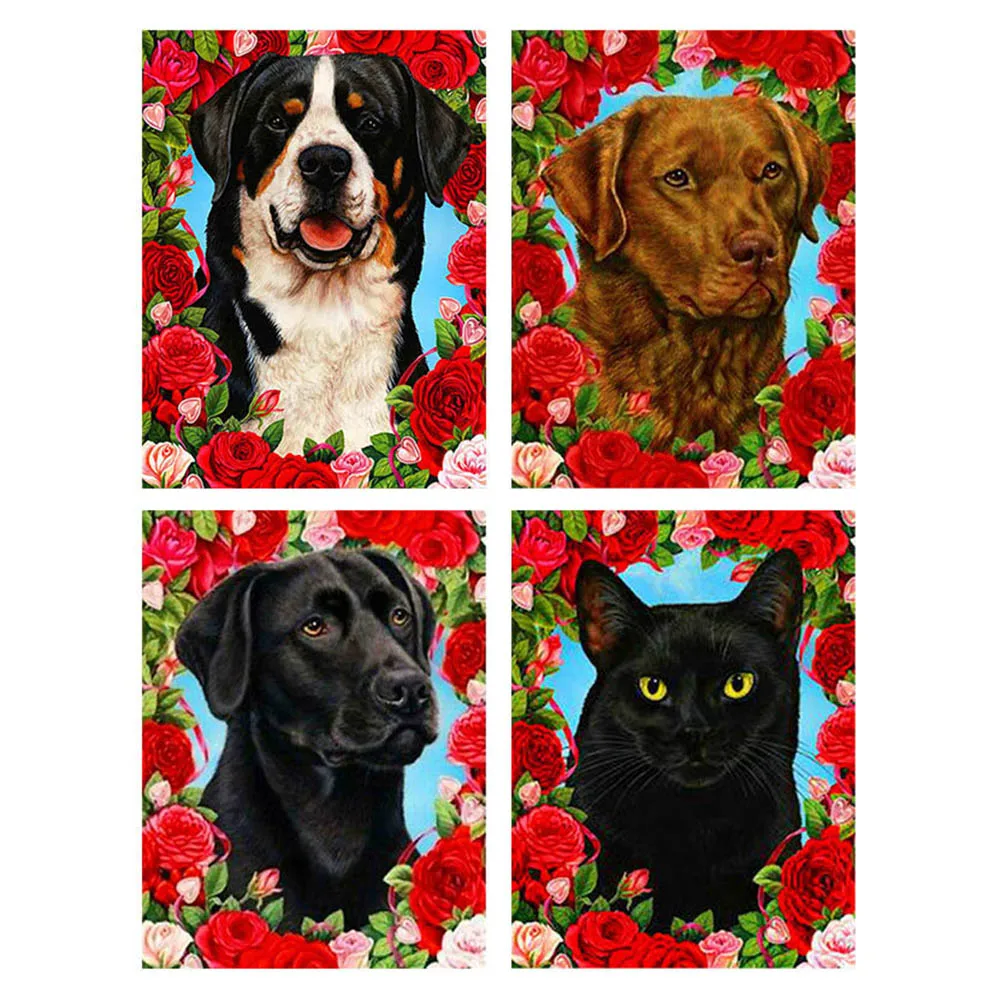 5D алмазная живопись сделай сам, животное, черная собака, кот, доща...