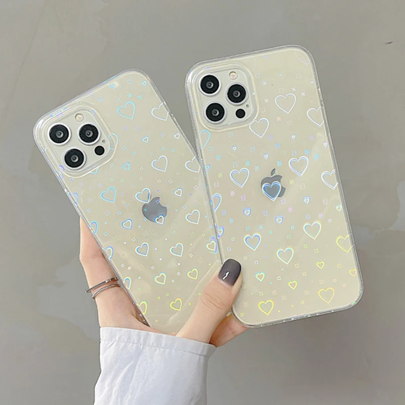 Прозрачный лазерный милый мягкий силиконовый чехол с рисунком серде...