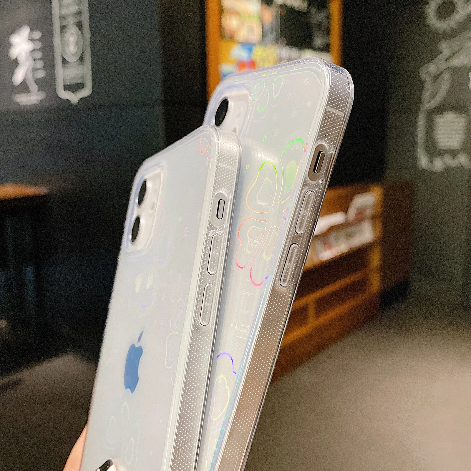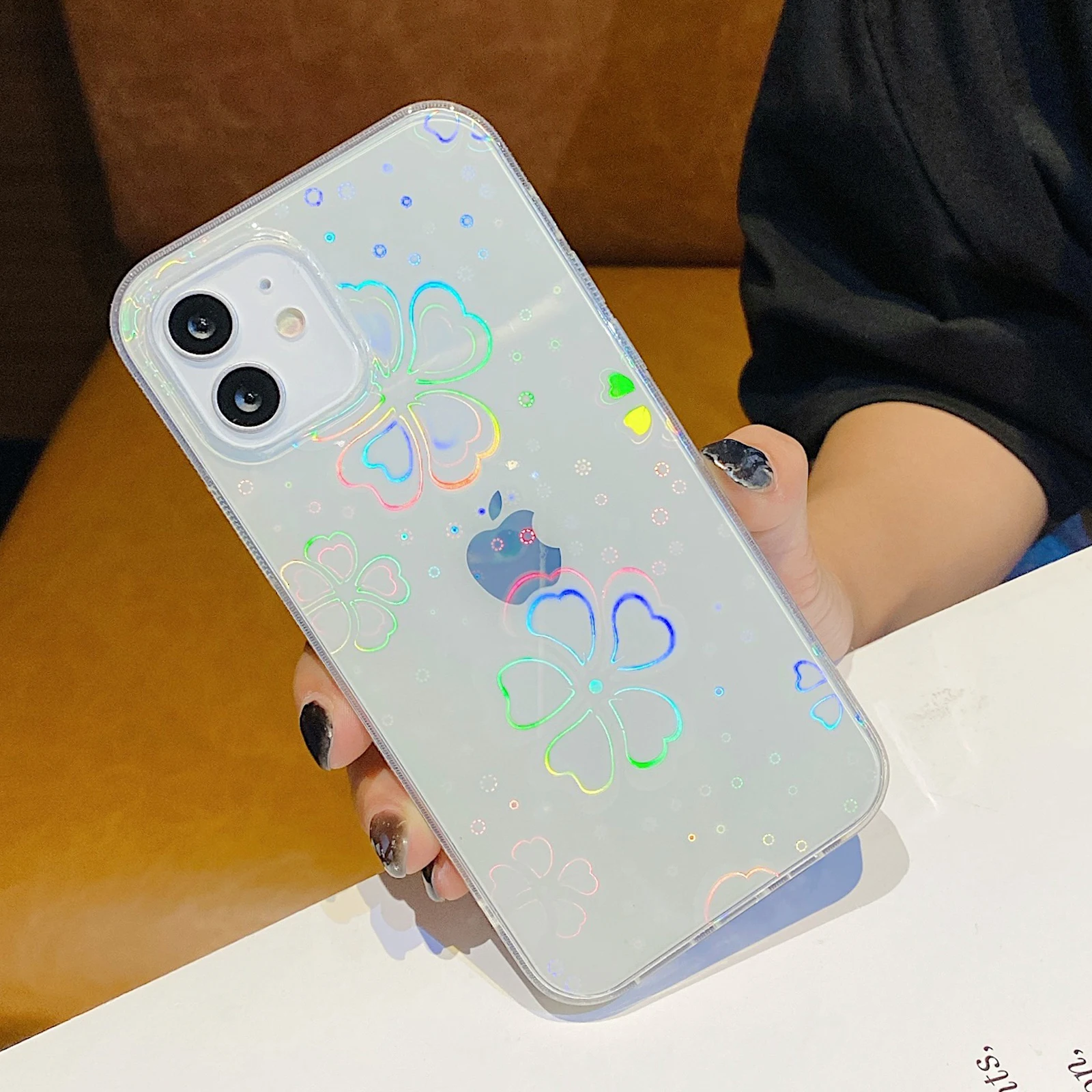 Голографический лазерный Прозрачный чехол для телефона с любовным сердцем бабочкой для iPhone 13 12 11 Pro Max XS Max XR X 8 7 Plus, прозрачный мягкий чехол-накладка