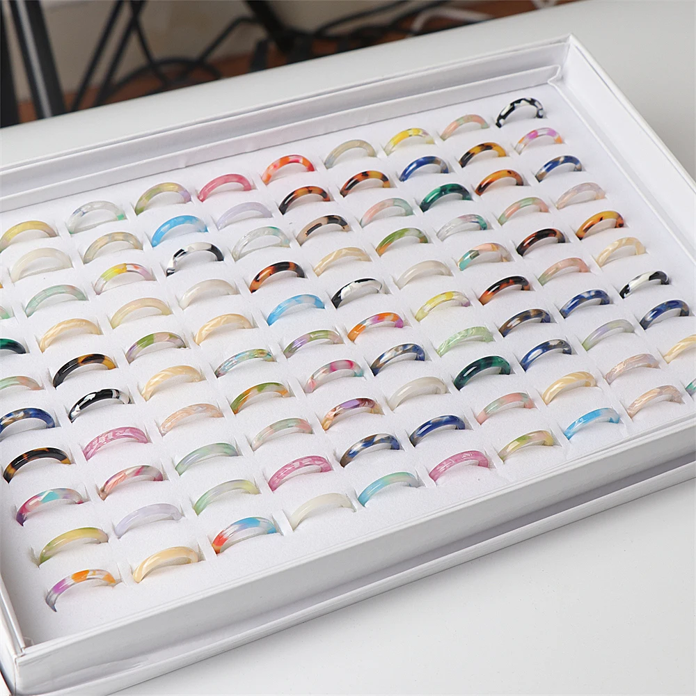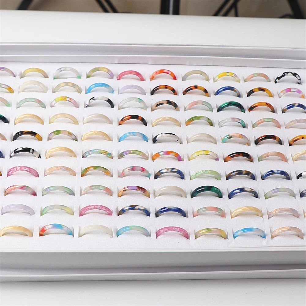 Модные Красочные Акриловые Кольца из смолы, 50 шт.лот, ювелирные из...