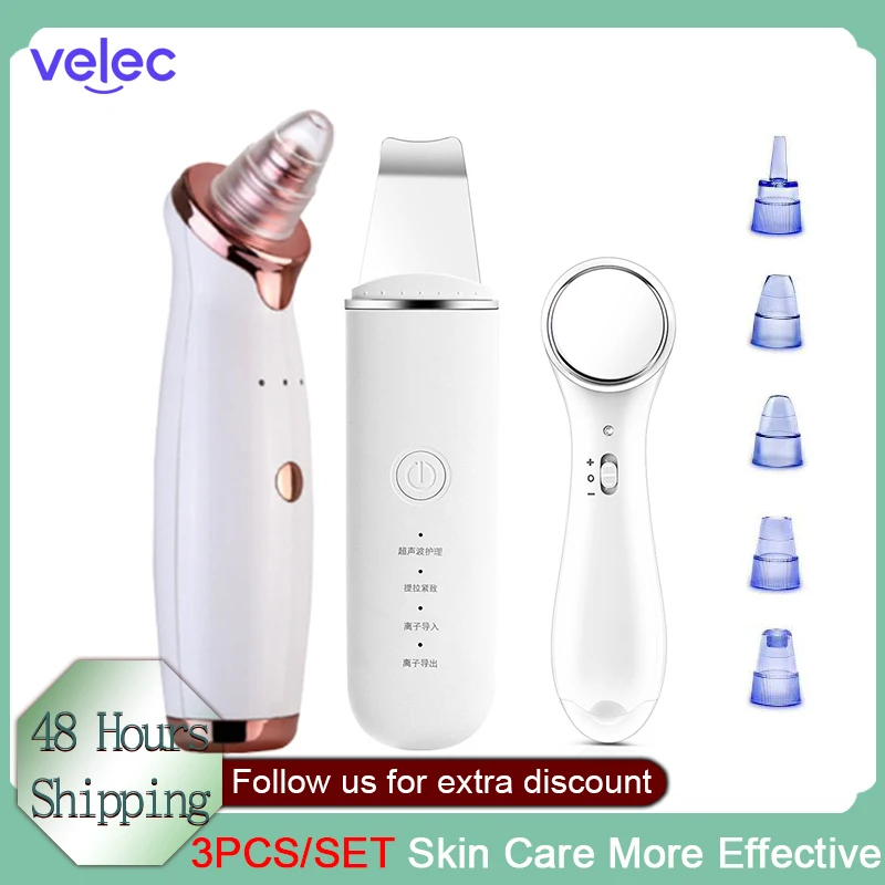 Ультразвуковой скребок для кожи Velec, вибрирующий глубокий шпатель для лица для удаления черных точек, лопатка для лица, массажер для кавитации и пилинга