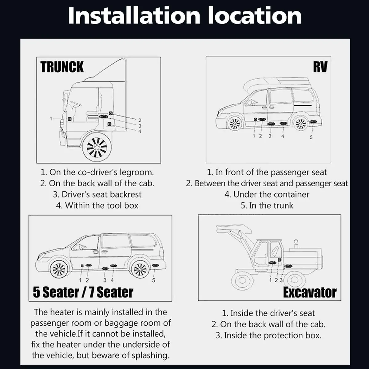 -Высококачественный корпус из алюминиевого сплава очень прочный и может избежать повреждений.-Может разобрать на новый автомобиль при замене транспортного средства.-Технология летучей, с помощью керамического зажигательного гнезда нагрев топлива испаряется в газ, воспламенение, полное сгорание.-Использование передовой технологии автоматического управления, с ненормальными условиями работы надежным.-Топливо, электричество, температура может быть установлена произвольно.-Используйте дизельное топливо.
