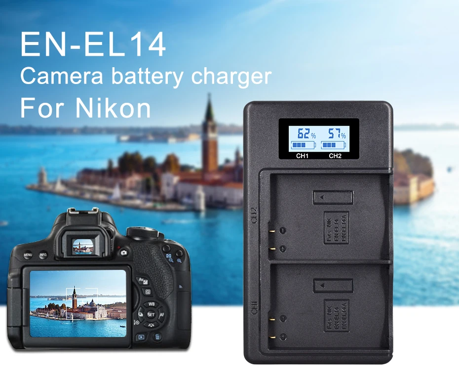 Номер: EN-EL14 EN-EL15 EN-EL9 EN-EL3EРежим: быстрое зарядное устройство USBВход: 5 В/2,1 А; 5 В/2 АВыход: 8,4 V 1000mA * 1 / 1000mA * 2;8,4 V 700mA * 1 / 500mA * 2
