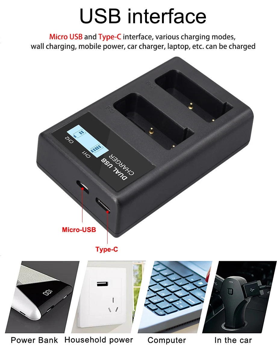 Это зарядное устройство является быстрым зарядным устройством usb с двумя слотами, есть много моделей зарядных устройств, пожалуйста, выберите соответствующее зарядное устройство в соответствии с вашей моделью батареи.