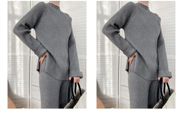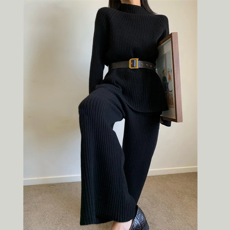 Комплект из двух предметов, свитер, вязаный спортивный костюм, пуловер для женщин, высокая талия, вязанные широкие прямые брюки, костюм, весна-осень, Одежда Harajuku