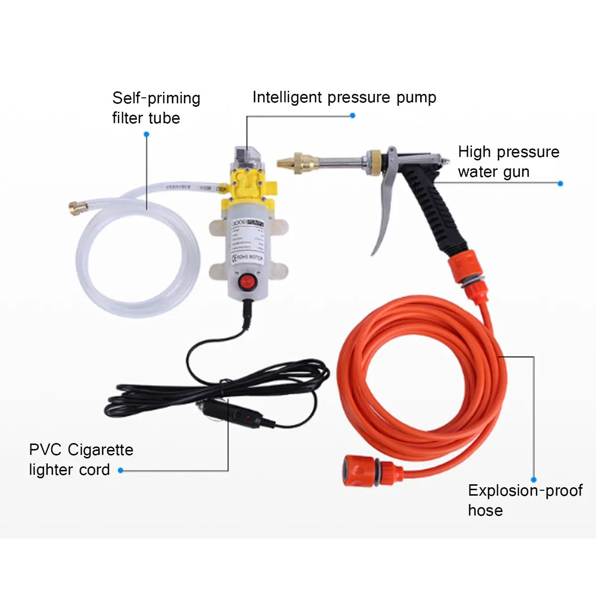 Миниатюрный Электрический мембранный Водяной насос, автоматический переключатель, помпа высокого давления для мойки автомобилей, 12 В постоянного тока, 120 Вт, 3 минуты