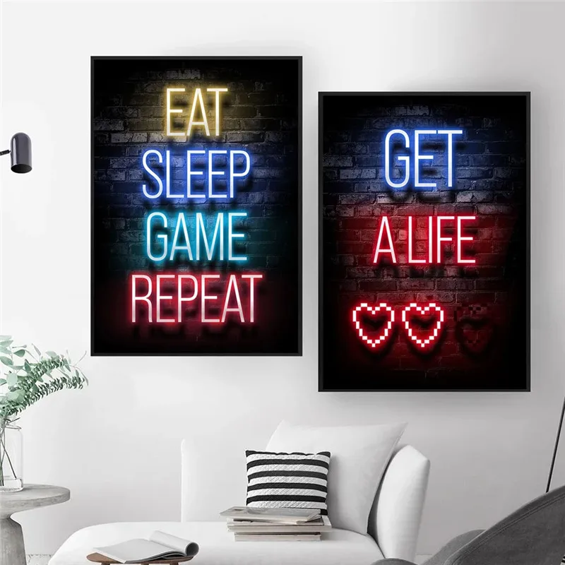 Картина на холсте Eat Sleep, арт-постер с повторяющимися играми, картина на стену для геймера, декоративная игровая комната