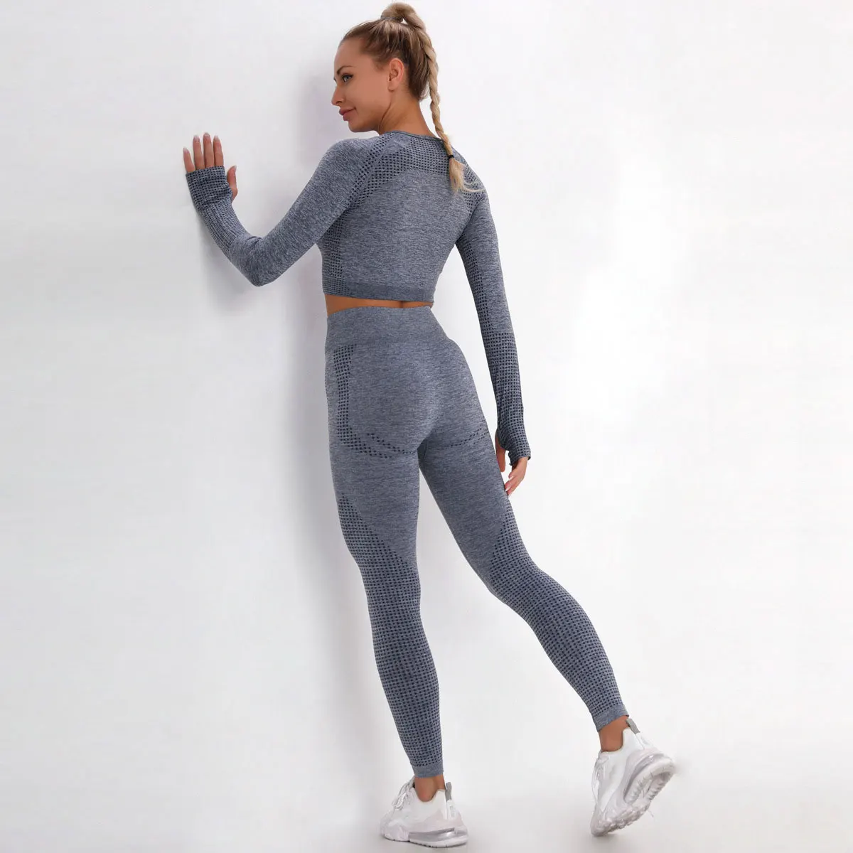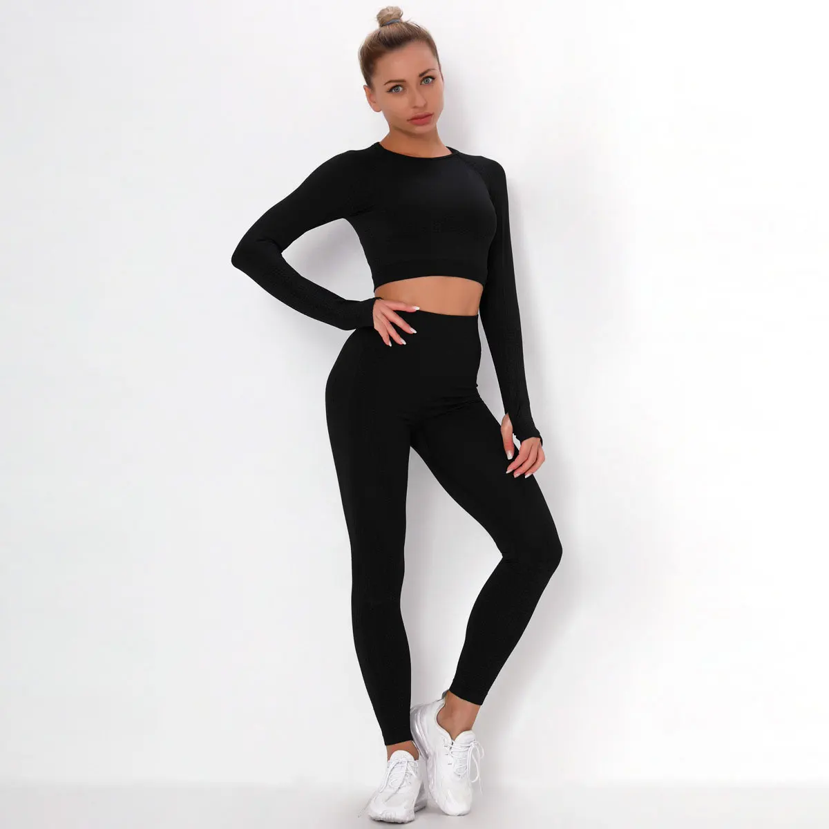 Женский бесшовный комплект для йоги, одежда для тренировок, бега, тренажерного зала, фитнеса, леггинсы с высокой талией, спортивная одежда с длинным рукавом, спортивные костюмы, 235 шт.