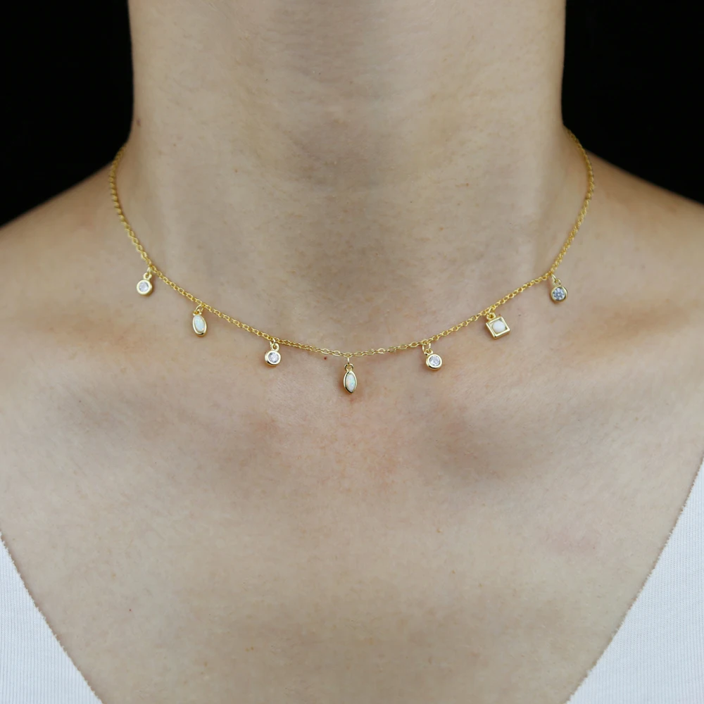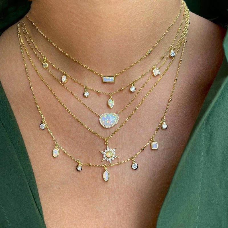 2021 минимальное серебро 925 пробы, простой квадратный круглый Фианит, Опаловый камень, шарм, геометрический нежный женский чокер, ожерелья для девочек, ювелирные изделия