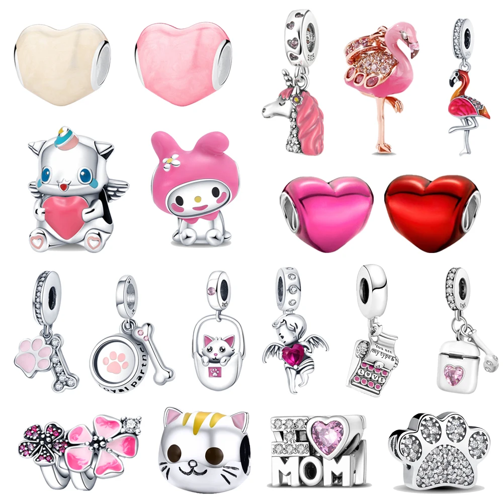 Лидер продаж, очаровательные бусины из серебра 925 пробы на красном...