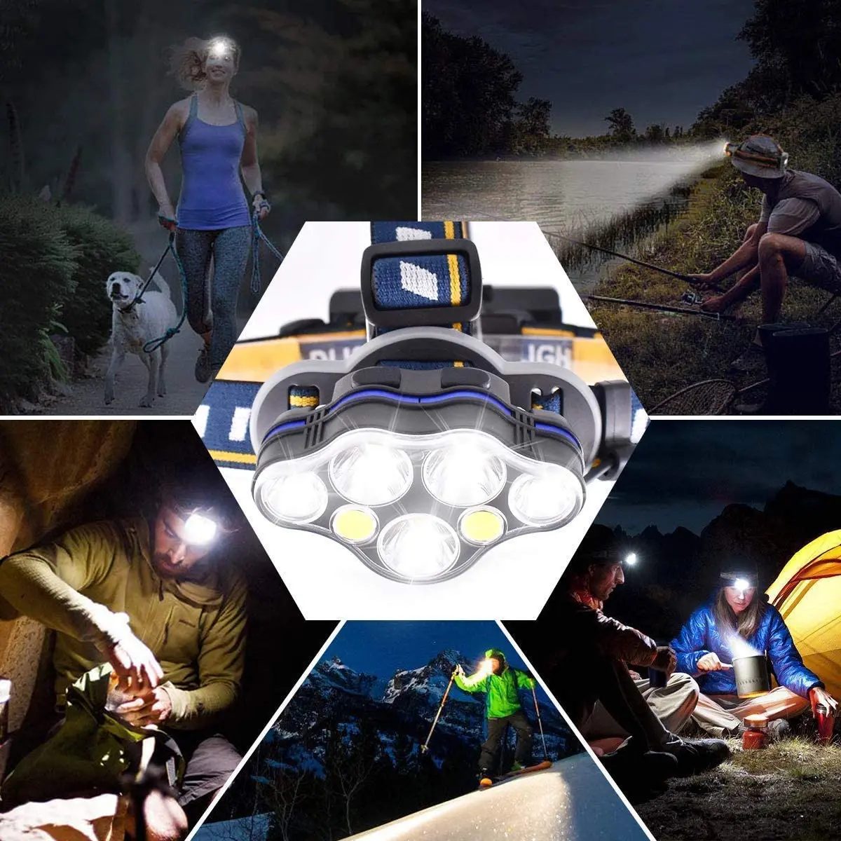 Яркий светодиодный водонепроницаемый Головной фонарь с подзарядкой от USB, 7 светодиодов