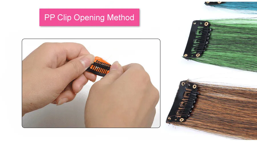 Удлинители синтетических волос Leeons с зажимами, термостойкие прям...