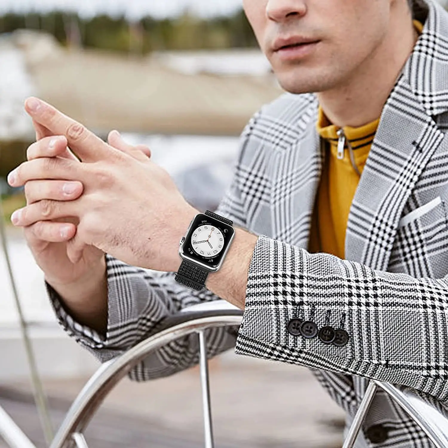 【Регулируемый Размер 】 для ремешков Apple watch 40 мм 38 мм работает с корпусом 40 мм/38 мм, подходит для запястья размером от 5,12 до 7,48 дюймов; ремешок 44 мм 42 мм работает с чехлом 44 мм/42 мм, подходит для размера запястья от 5,7 до 8,66 дюймов.【Патенты в ожидании & использование-центрированный дизайн 】 Двухсекционный стиль ремней с стабильным соединительным крючком и петлей, есть Пряжка для дополнительной безопасности. Спортивная петля надежно удерживает часы на запястье, не расстраивайтесь при носке.【Приятный для кожи материал 】 нейлоновый ремешок для часов изготовлен из качественного мягкого нейлона, легкий и дышащий, легко чистится, создает удобную накидку на ваше запястье.【Color s】 для ремешков apple watch 44 мм 42 мм 40 мм 38 мм для мужчин и женщин, несколько цветов на выбор, С помощью этих ремешков iWatch вы можете добавить небольшой цвет в свой iWatch или повседневный наряд.38 мм = 40 мм; 42 мм = 44 ммВ комплект входит:1 тканый нейлоновый ремешок (часы в комплект не входят)