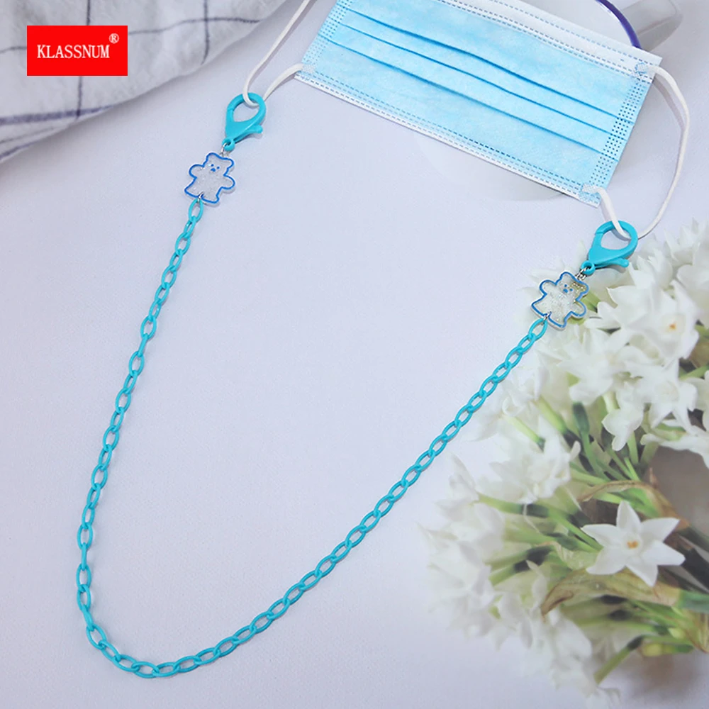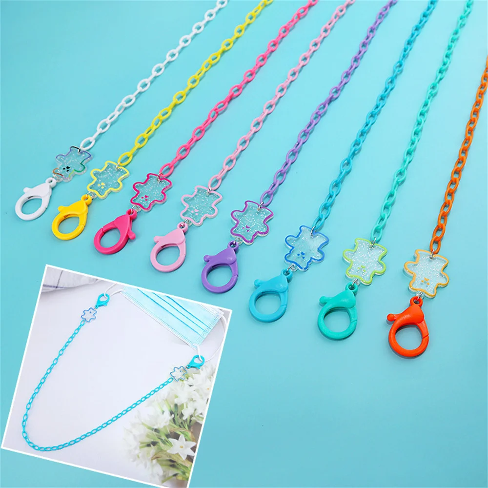 Новинка 2022, милая акриловая цепочка, прозрачный мультяшный медведь, Подвеска очки, цепочка для маски лица, ремешок на шнурке для детей, женщин, ремешок для защиты от потери