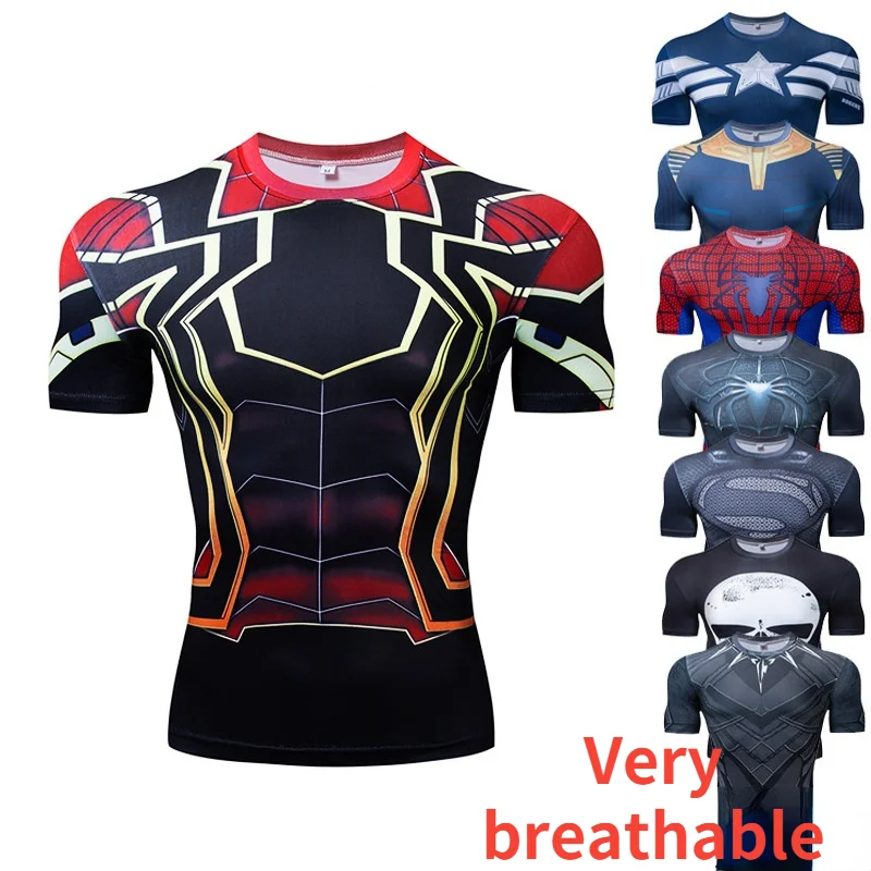 Новинка 3D Рубашка супергероя Marvel Мужская модная спортивная быстросохнущая одежда Человек-паук Капитан Америка искусственная футболка