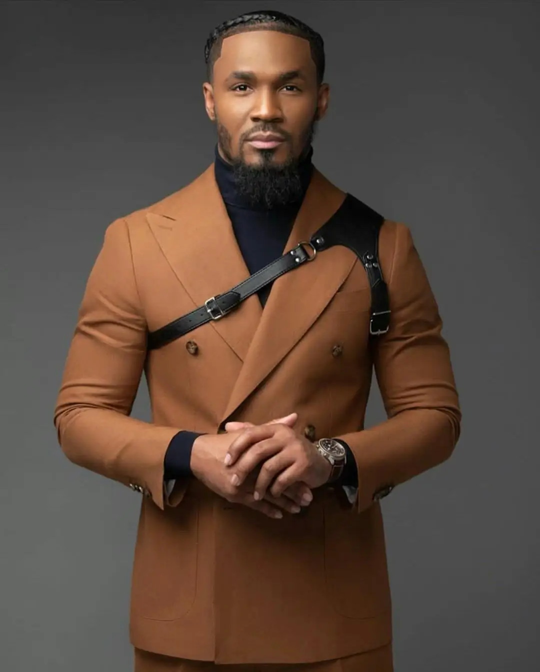 Новинка 2022, дизайнерский Коричневый мужской костюм, приталенный э...