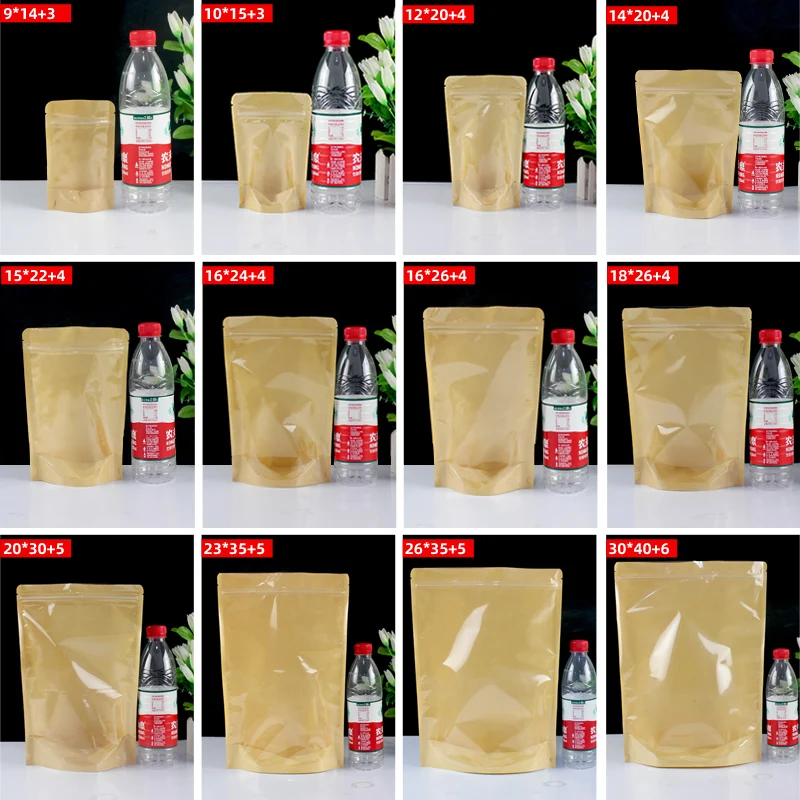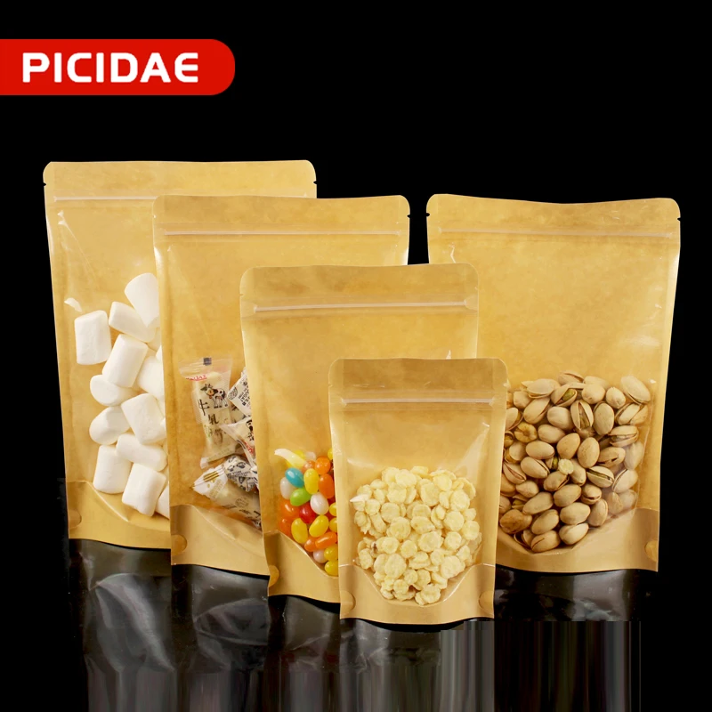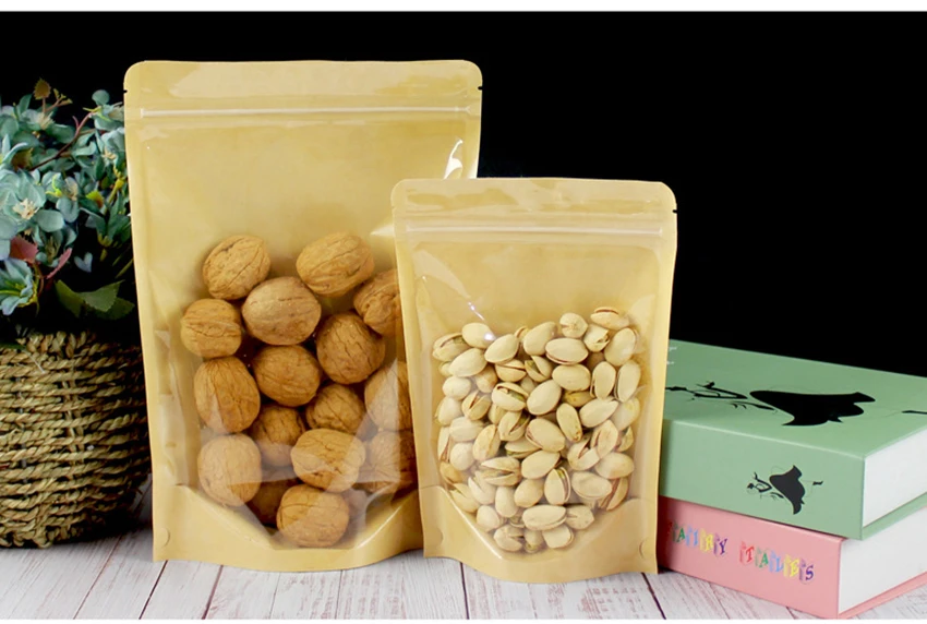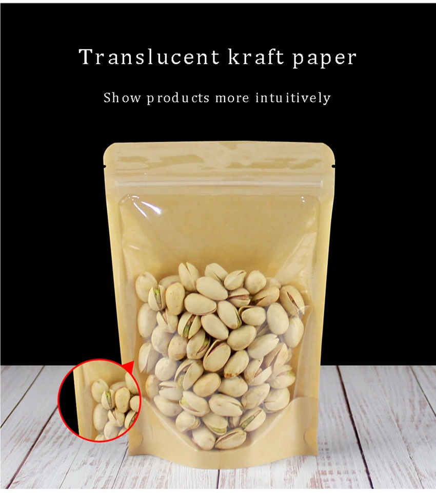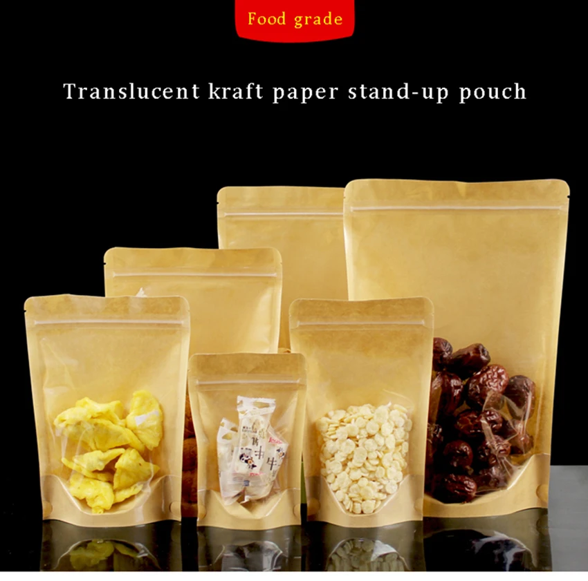 100 шт, Крафт, бумага, подставка, мешок, полупрозрачный, молния, зиплок, мешок, чай, сухой, товары фрукты, повторно герметичный, мешок, праздник, еда, упаковка, мешок, шоколад, зерна, стенд, мясо, композит, конфеты, фрукты, товары, одежда, Ziplock сумка, хранение на кухне, мешки для хранения, многоразовые сумки, кухонные хранения и организации, мешок фасоли