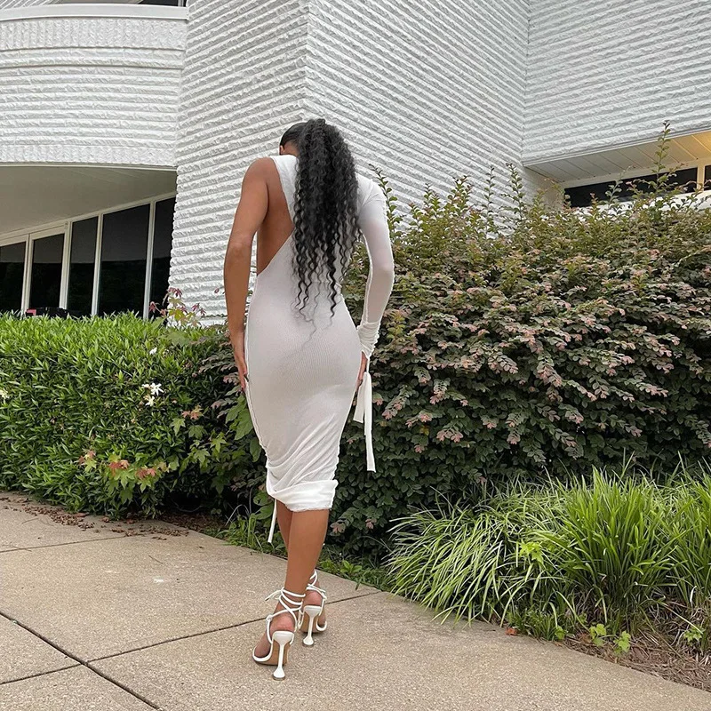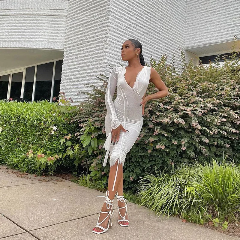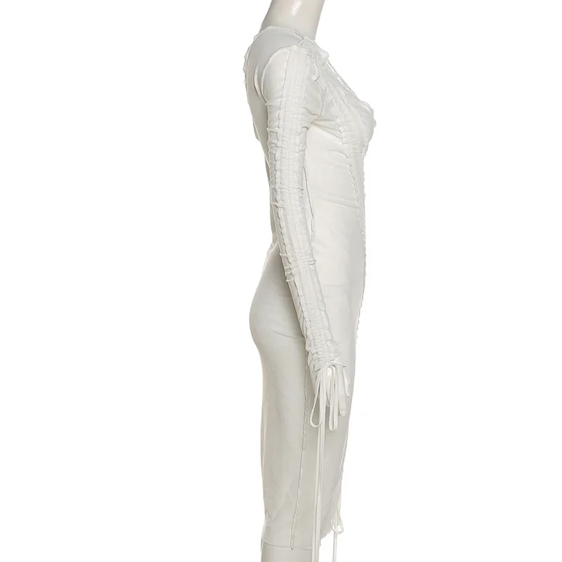 Женское Сетчатое кружевное платье со шнуровкой и V-образным вырезом
