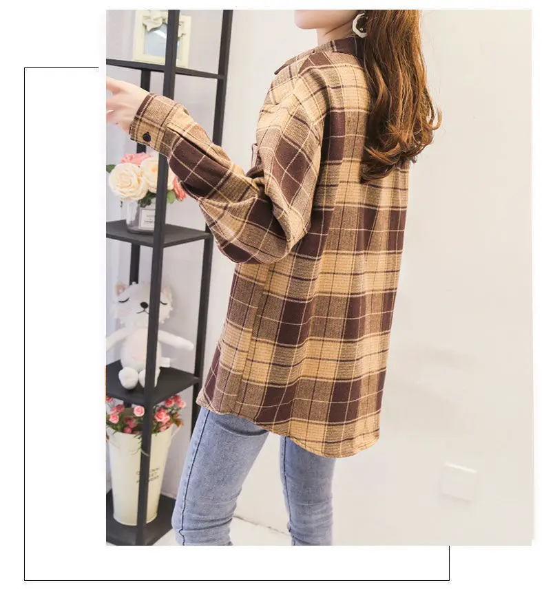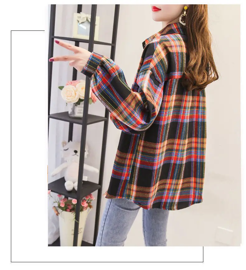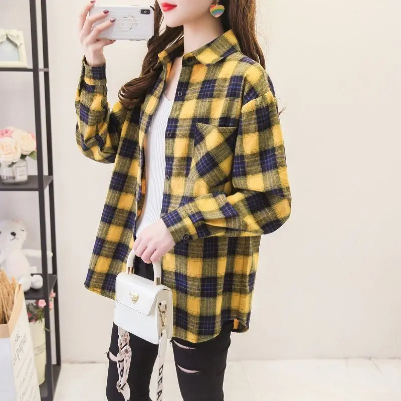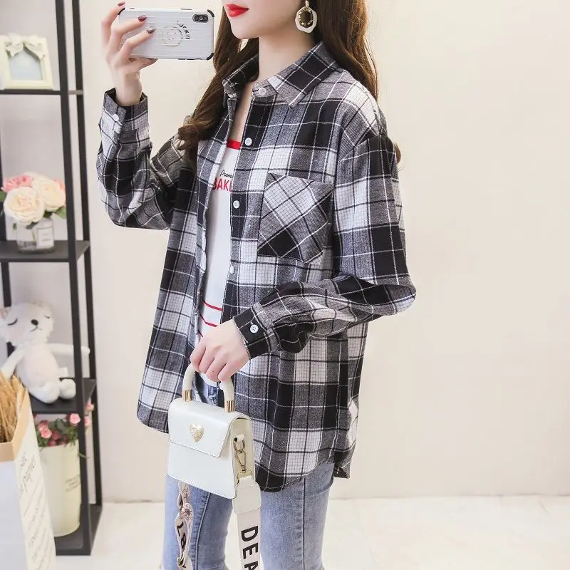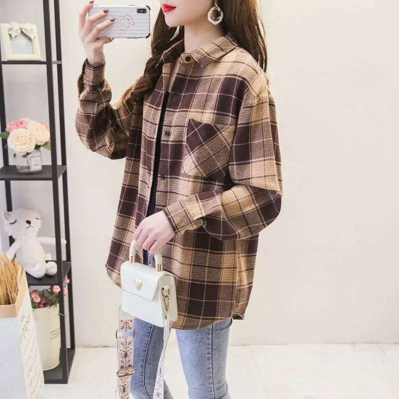 Куртка женская клетчатая оверсайз с отложным воротником, модная свободная уличная одежда, Y553, осень