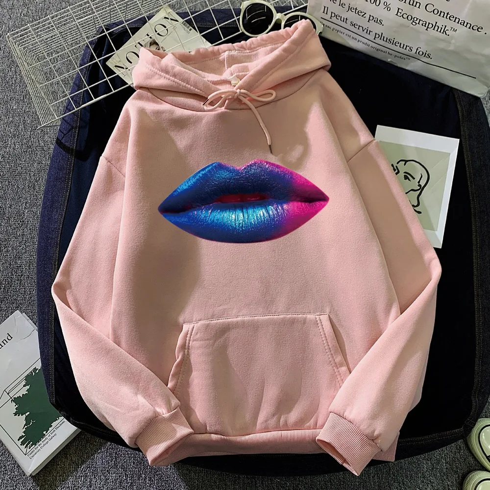 Свободная толстовка с капюшоном в виде губ, Розовый Топ с длинным рукавом, Модный свитшот из полиэстера, повседневный спортивный пуловер с капюшоном в стиле хип-хоп, трендовая уличная одежда