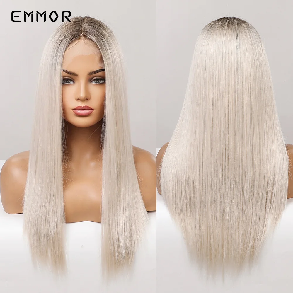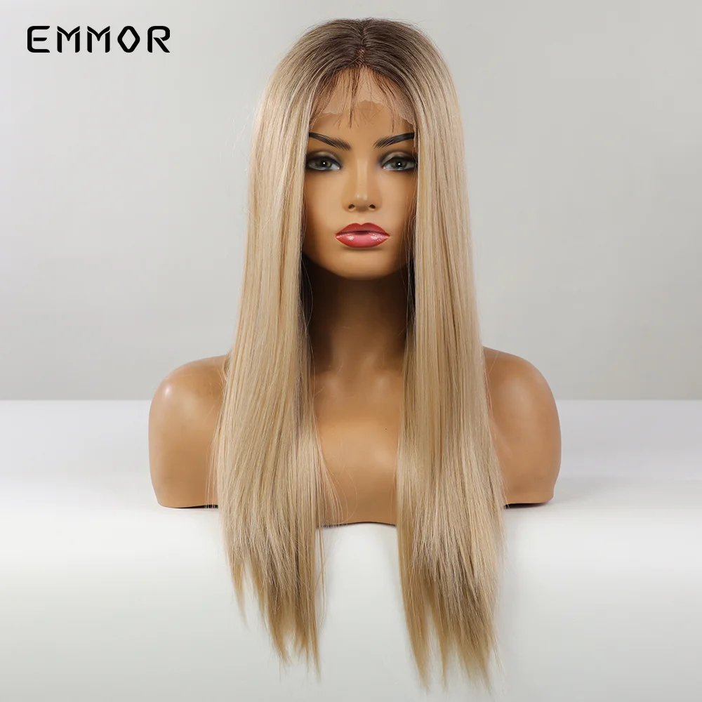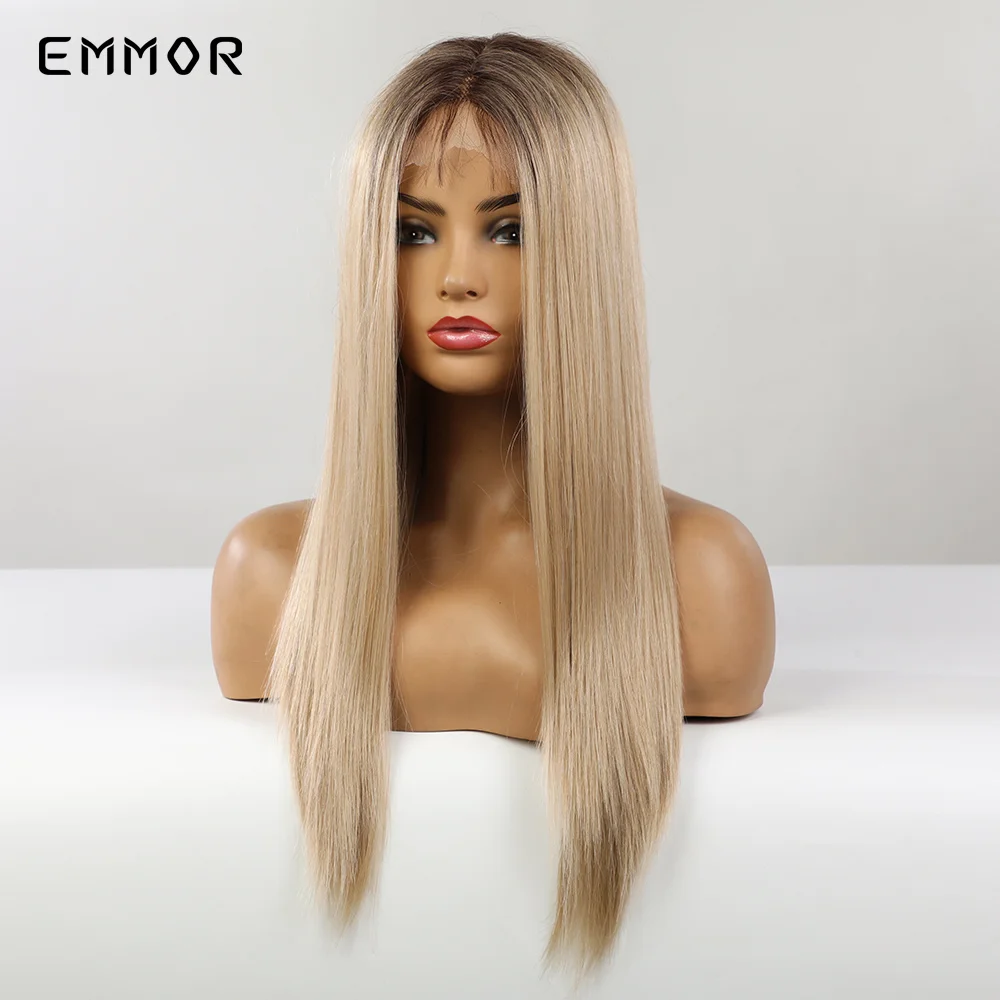 Парик Emmor синтетический с Т-образной кружевной вставкой, прямые парики с Омбре от коричневого до светильник лого светлого цвета для белых женщин, повседневный парик из натуральных волос высокой плотности