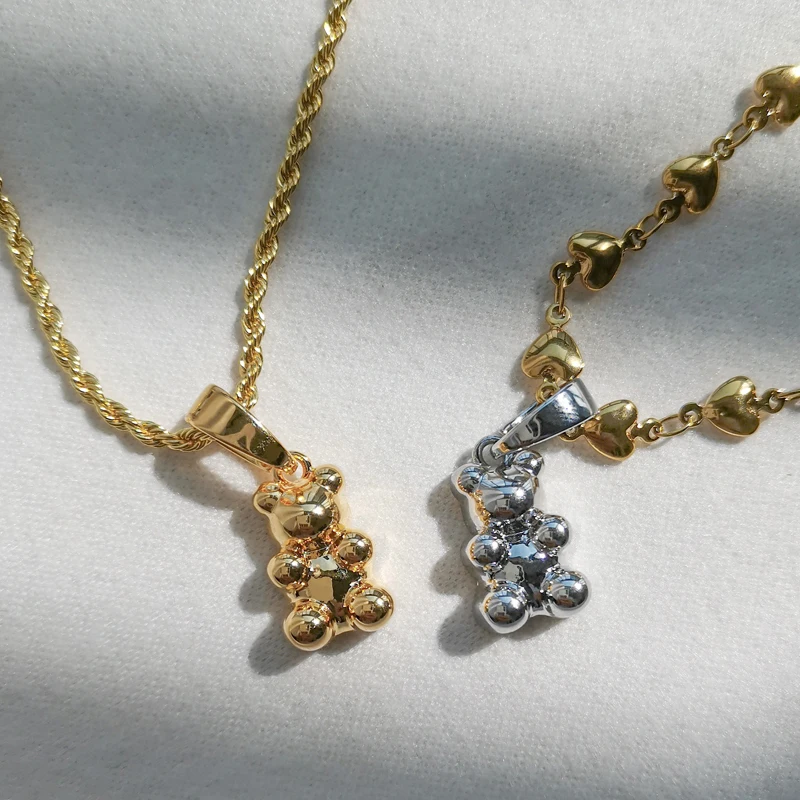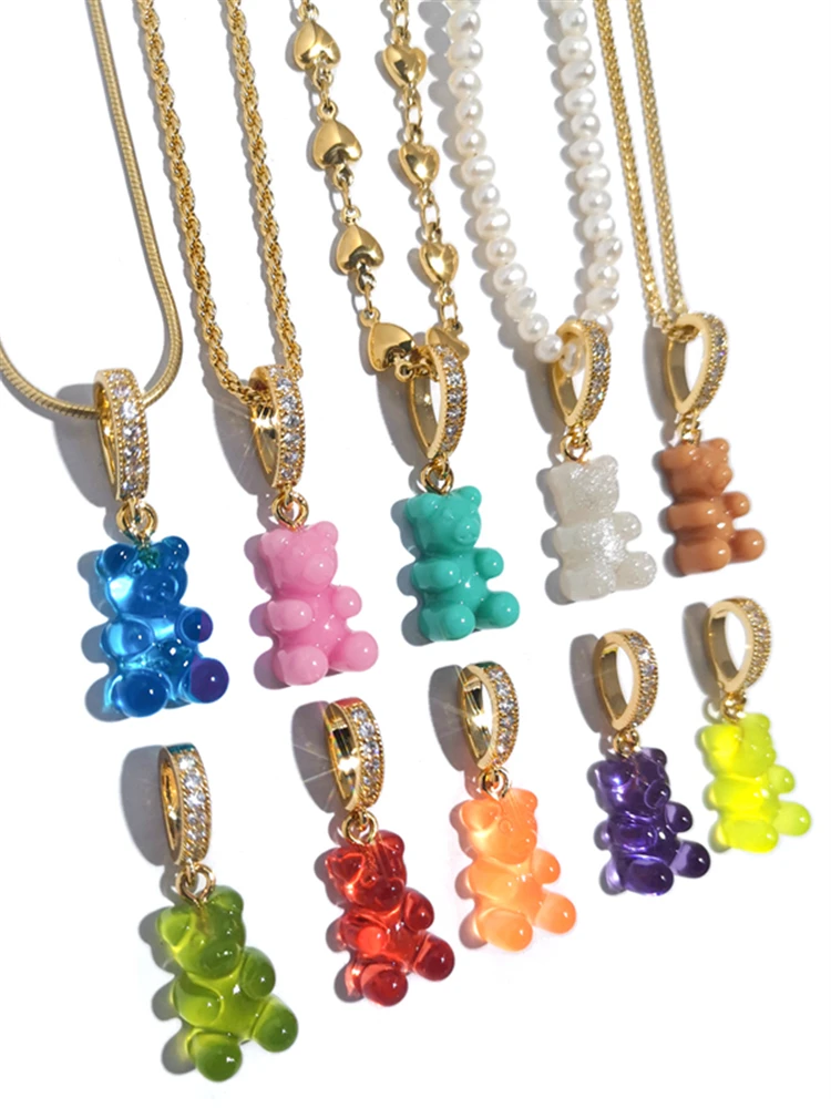 Новый Цвет Подвеска ResinTeddy медведь кристалл сердце позолоченное ожерелье-чокер цепочка до ключиц для женщин ювелирные изделия для вечерние HUANZHI 2021