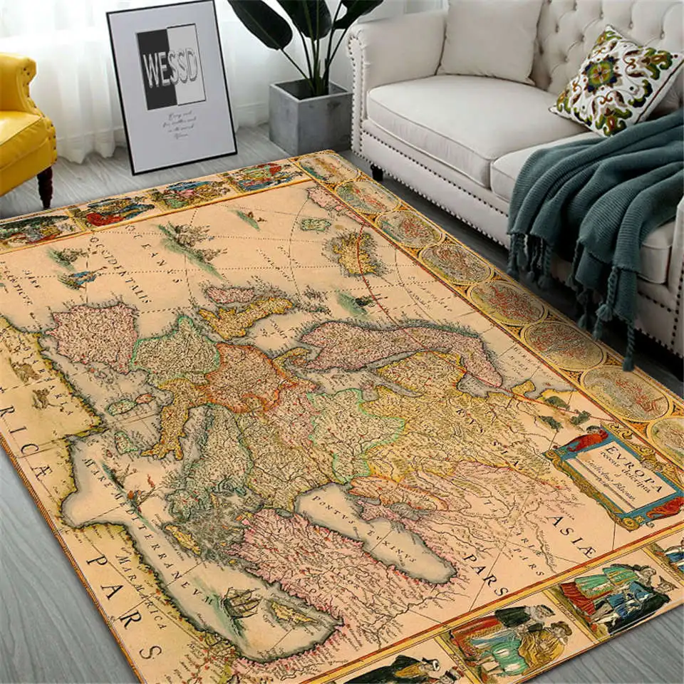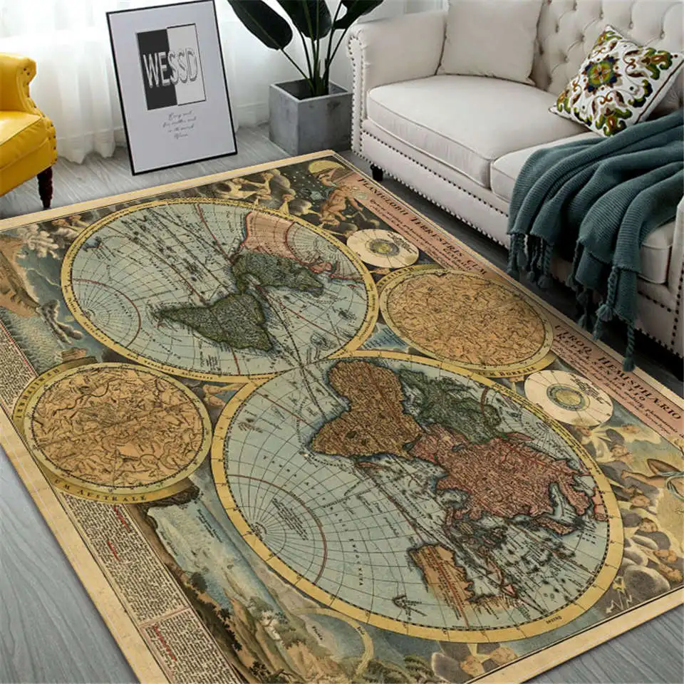 Ретро ковер с картой большой ковер для гостиной, мебель для спальни, напольный коврик, винтажный декоративный домашний фланелевый ковер, моющийся ковер для зала