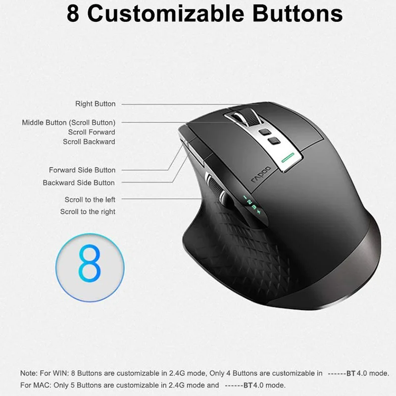 Беспроводная мышь Rapoo MT750PROW, перезаряжаемая многорежимная мыш...