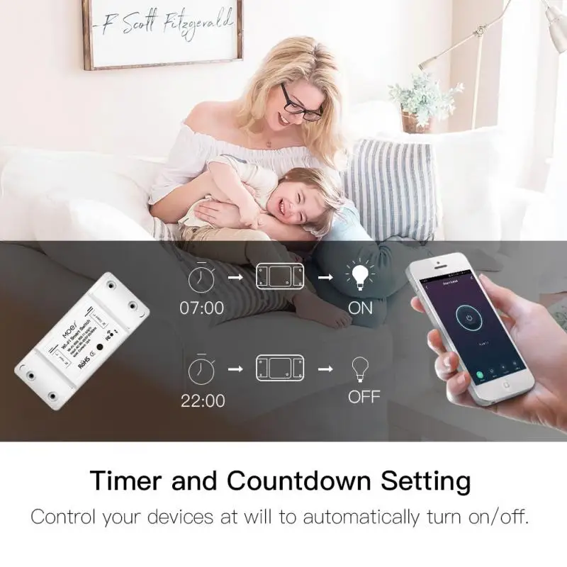 5. Настройка таймера: тщательно Управляйте бытовой техникой с помощью функции таймера в вашем приложении, которая позволяет автоматически включать/выключать их в определенное время. Кроме того, он разработан с функцией циркулирования, случайного и обратного отсчета для более гибкого управления таймером; Гораздо более легкий режим сопряжения для добавления устройства с подключением Wi-Fi и Bluetooth.