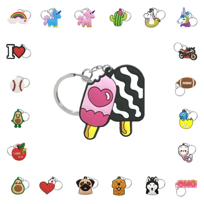 Брелок для ключей из ПВХ, цветной мультяшный мини-брелок с рисунком...