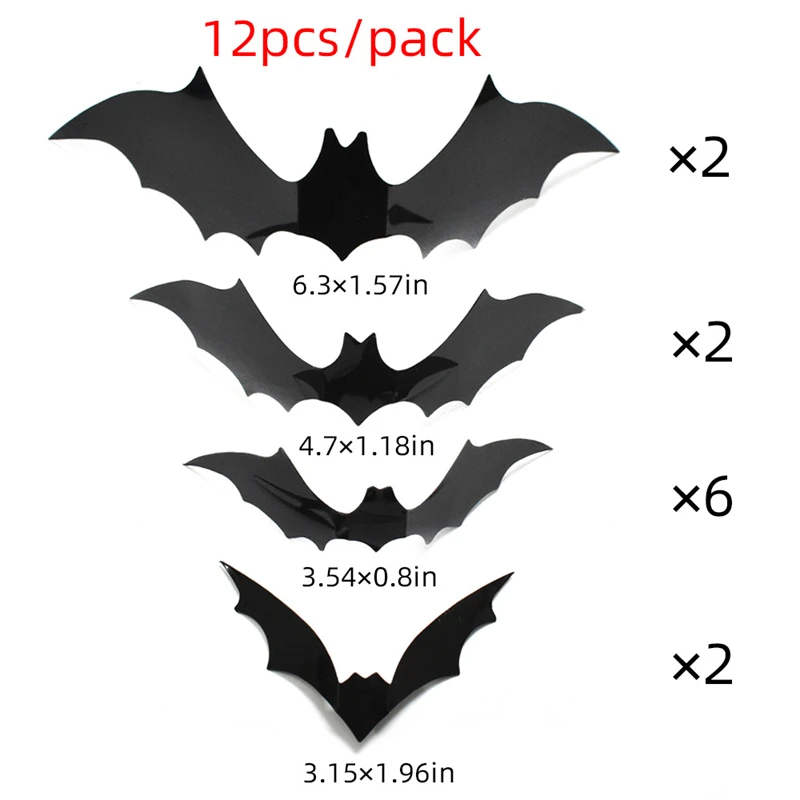 12 шт.упак. Хэллоуин 3D наклейка в форме летучей мыши наклейки на с...
