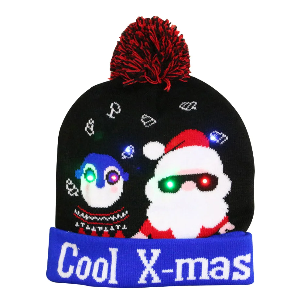 Светодиодная Рождественская вязаная шапка с мультяшным принтом, светодиодная вязаная шапка, светящаяся Шапка-бини, светящаяся шапка для детей и взрослых, рождественские и новогодние подарки для вечеринки