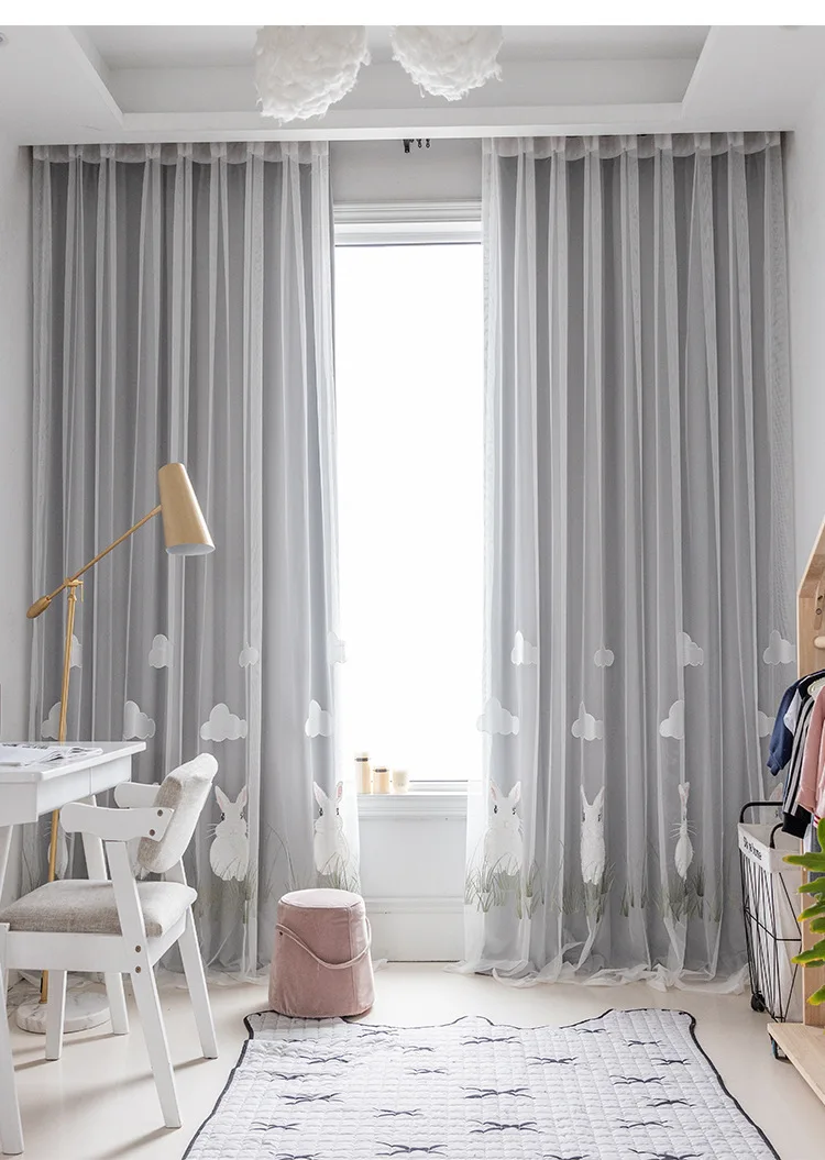 Вышитые шторы для детской спальни, тюлевые занавески с рисунком зам...