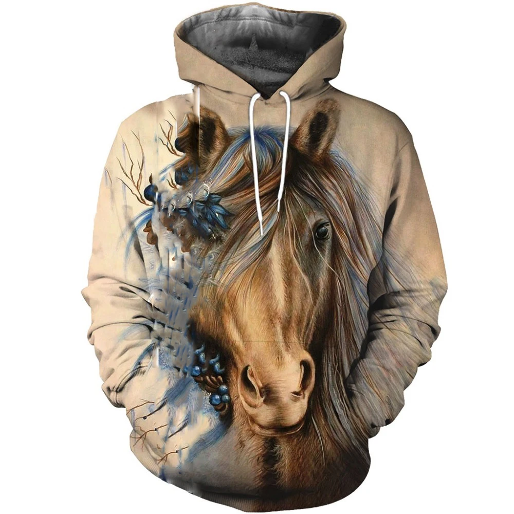 Толстовка мужская с 3D-принтом красивая лошадь, Свитшот унисекс, ул...