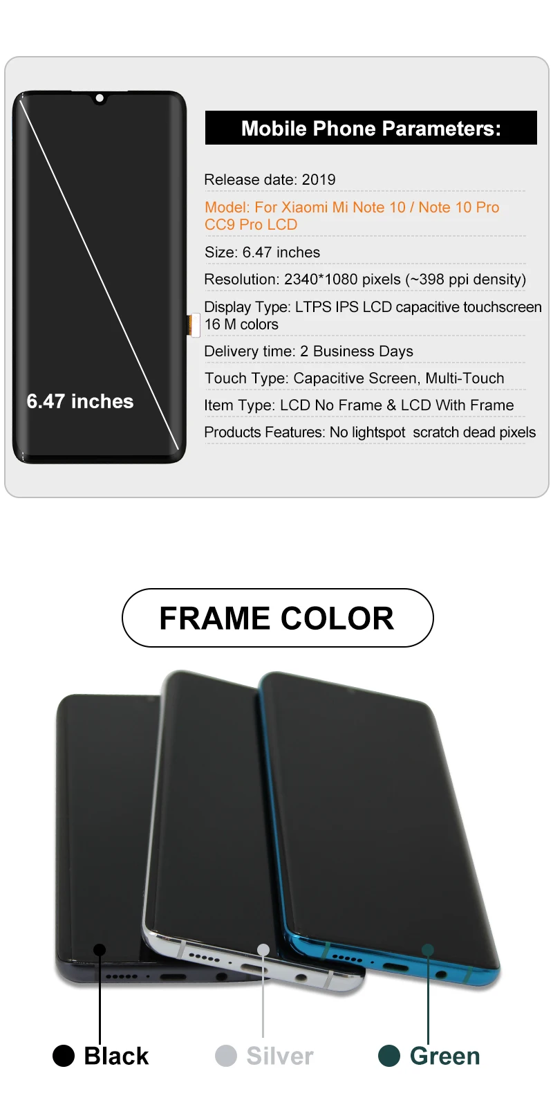 6,47 "Оригинальный ЖК-дисплей для Xiaomi Note 10, сенсорный экран в сборе для Xiaomi CC9 Pro, дисплей MI Note 10 Pro, запасные части