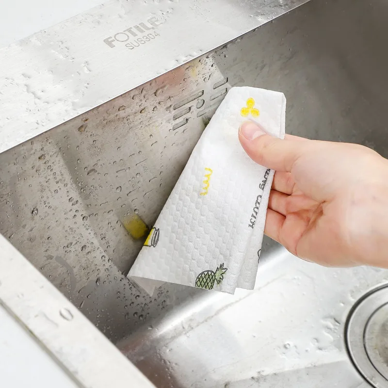 Плотная одноразовая ткань для мытья посуды с принтом, нетканые поло...