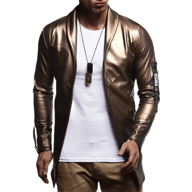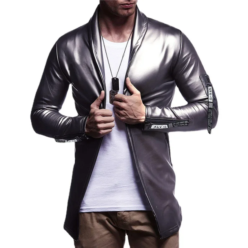 Новинка Мужская эластичная мотоциклетная кожаная куртка на молнии для ночного клуба и выступления крутая кожаная куртка
