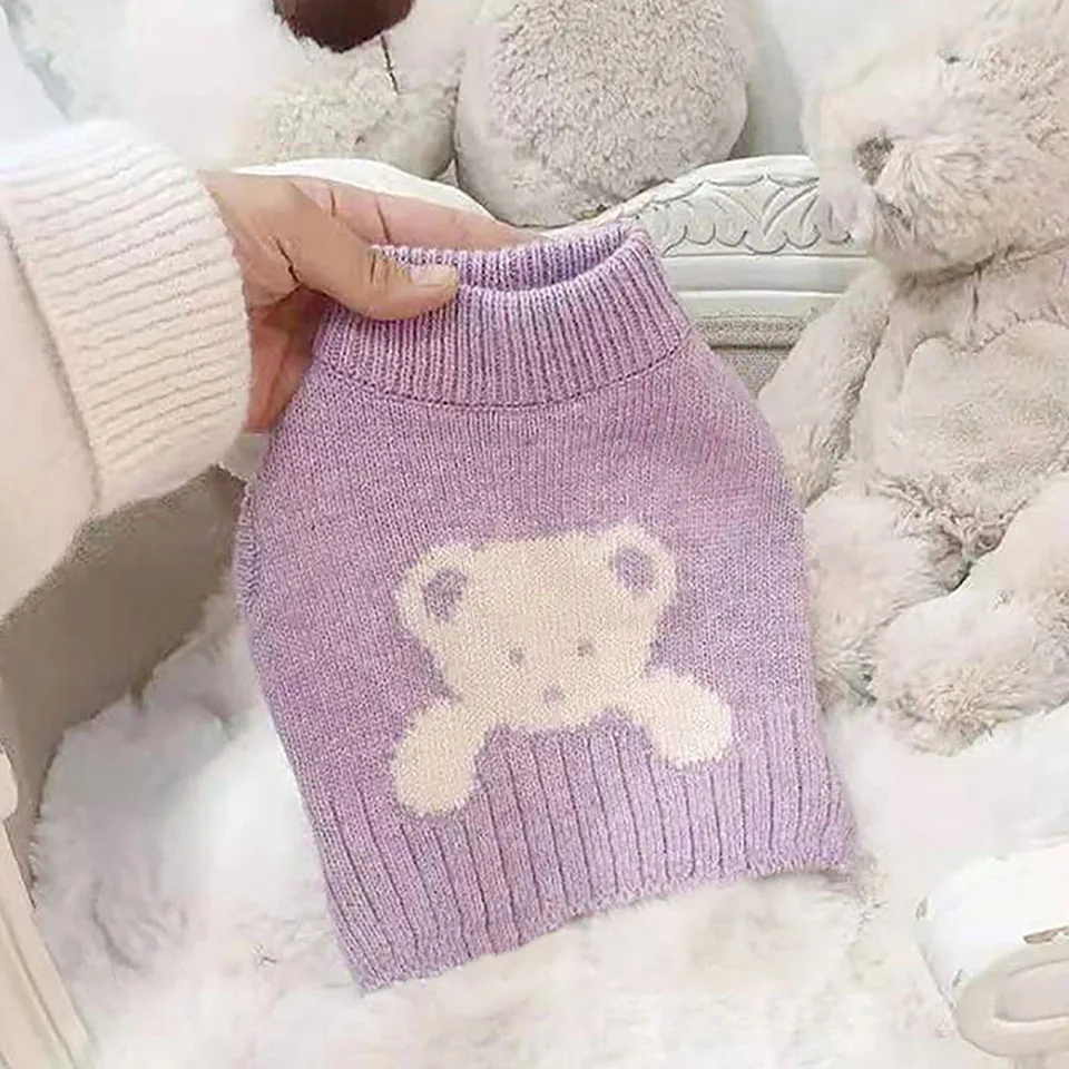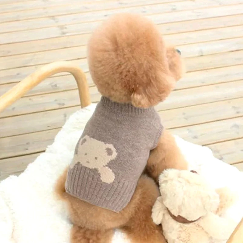 Вязаный женский пуловер с рисунком кота Тедди зимняя одежда для щенка теплая Домашняя одежда Шнауцер мягкая одежда с двумя ногами